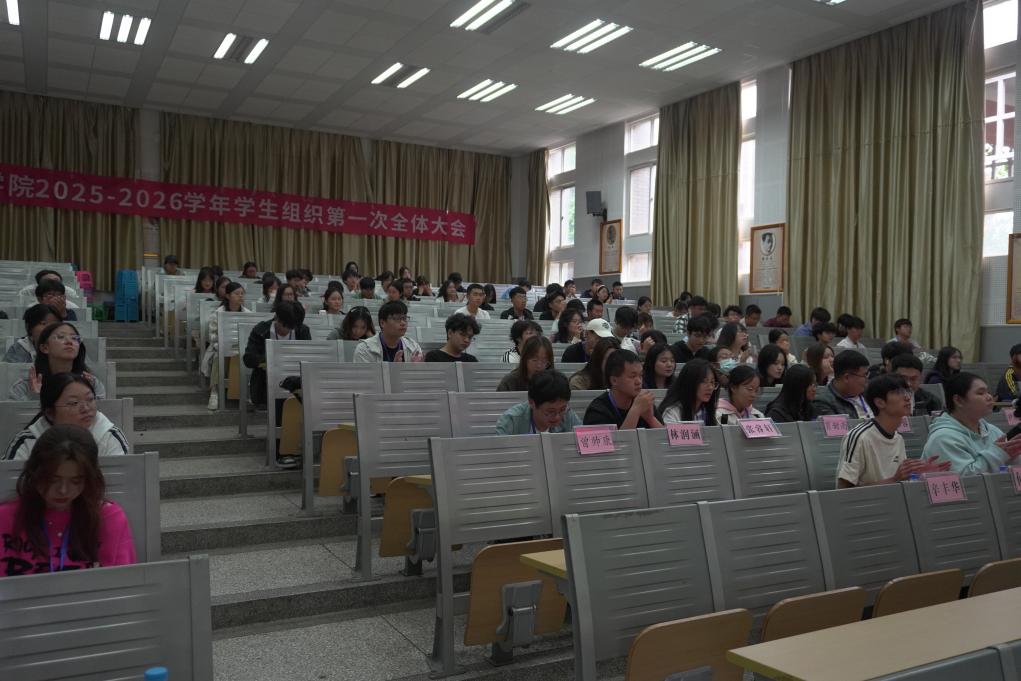 为明确学生组织新学年工作方向,凝聚组织力量,2025年10月18日16:30,理学院于理学楼100报告厅举办学生组织2025-2026学年第一次全体大会,学生组织全体成员共同参与,本次大会由团委办公室主任主持。